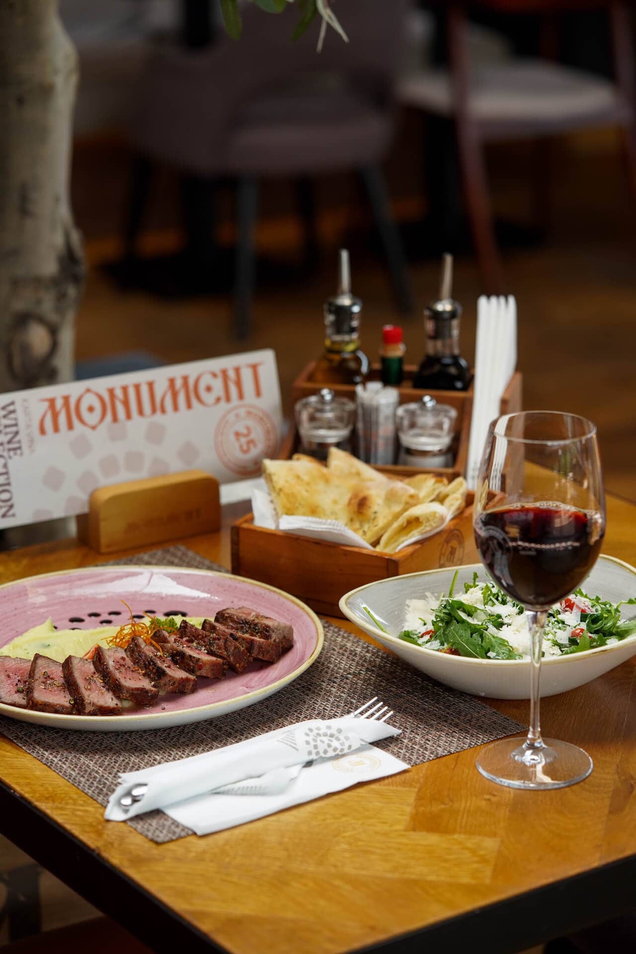 Koncept Monument restorana je jasno isplaniran prema potrebama sredine, zasnovan na autentičnom jelovniku, brzoj i kvalitetnoj usluzi, dobroj atmosferi i zabavi.